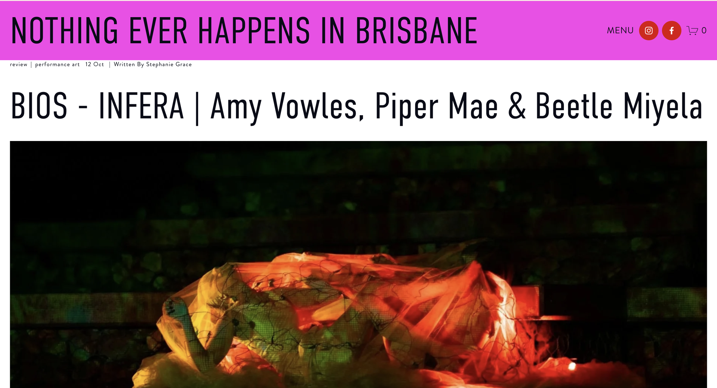 BIOS - INFERA | Amy Vowles, Piper Mae & Beetle Miyelareviewperformance art. October 12Written By Stephanie Grace Read Review